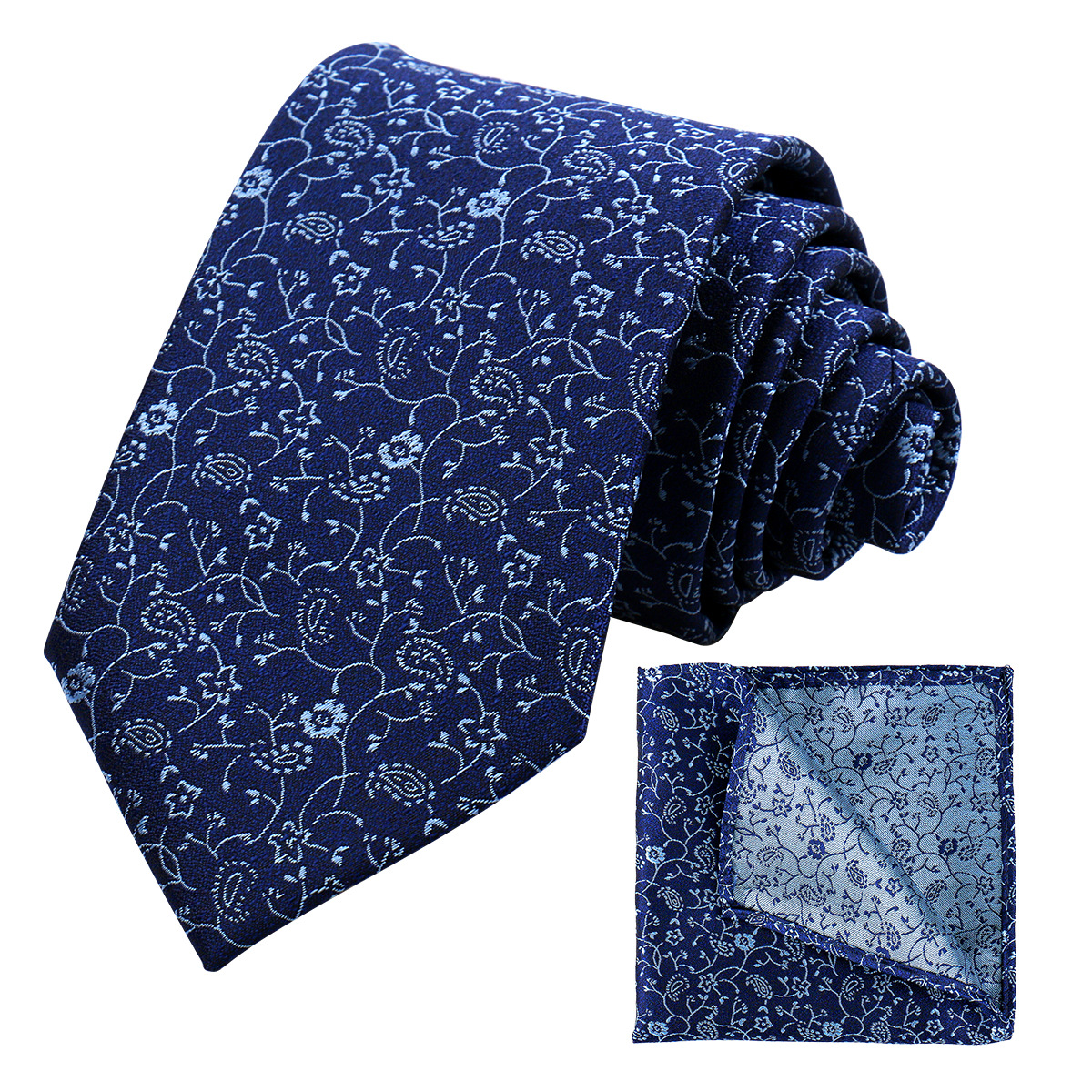 伝統的なペイズリー模様を全面に施した上品なネクタイとポケットチーフのセットです。 渦巻き状の美しい曲線が織りなすペイズリーデザインが、装いに気品と華やかさを添えます。 ビジネスシーンはもちろん、結婚式やパーティーなどのフォーマルな場面でも活躍する一品です。 お揃いのチーフが付属しており、統一感のあるコーディネートが簡単に完成します。 上質な生地を使用したネクタイは、なめらかな肌触りと美しい光沢が魅力です。
