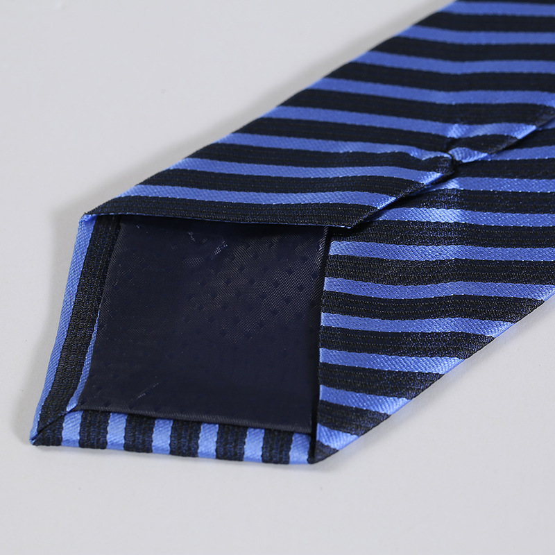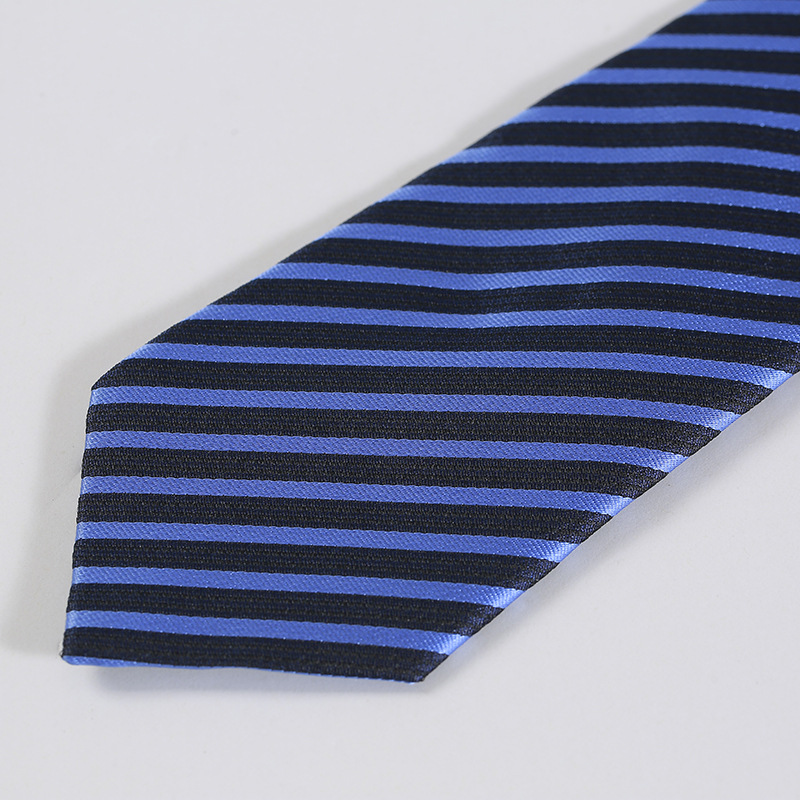 細やかな斜め縞が美しく配置されたストライプ柄のネクタイです。 均等な幅で斜めに流れるストライプは、洗練された印象を与え、ビジネスシーンに最適です。 光沢のある上品な生地を使用しており、結び目も美しく仕上がります。 クールビズスタイルから通常のスーツスタイルまで幅広く活躍する一本です。 シンプルながらも存在感があり、胸元をすっきりと引き締めてくれるネクタイです。