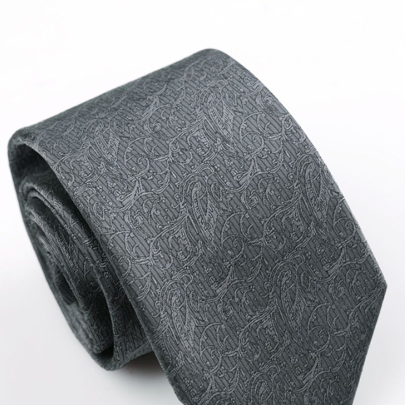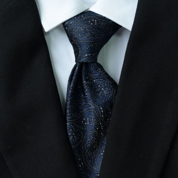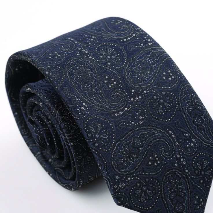 伝統的なペイズリー柄を全面に施した高級感あふれるネクタイです。 真絹素材を使用し、繊細な織りで表現された曲線模様が品格を演出します。 ビジネスシーンからフォーマルな場まで幅広く活躍し、洗練された大人の装いを完成させます。 8センチ幅の標準的なサイズで、結びやすく美しいノットが作れます。 上質な生地感と優雅なデザインが、着用者の個性を際立たせる逸品です。