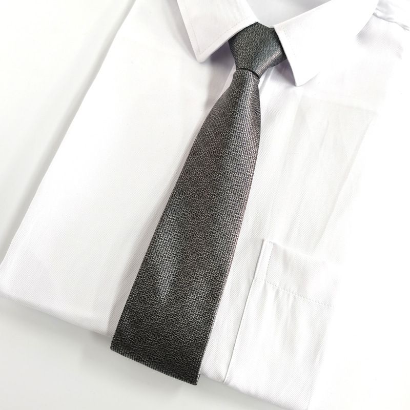 細やかな織り目が美しい光沢を生み出す無地のネクタイです。 シンプルながらも上質な生地感が際立ち、ビジネスシーンからフォーマルな場面まで幅広く活躍します。 ジッパー式で簡単に着脱できる便利な仕様となっており、忙しい朝でもスムーズに身支度が整います。 洗練された佇まいで胸元を引き締め、どんなシャツとも相性良くコーディネートできる万能な一本です。 日常使いにも特別な日にもおすすめの定番アイテムです。
